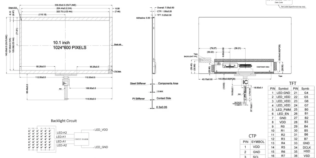 Yalnız 235mm × 143mm × 7.05mm olan incə ölçüləri, kompakt qurğular üçün uyğun hala gətirir. 3.3V (CTP üçün 40 pin FFC kabelindən istifadə edərək (6-Pin FFC), 10.1 düymlük sənaye PCAP sensoru ekran modulu, -20 ° C-dən 70 ° C-ə qədər olan temperaturda işləyir və -30 ° C-dən 80 ° C-ə qədər olan bir temperaturda işləyir.