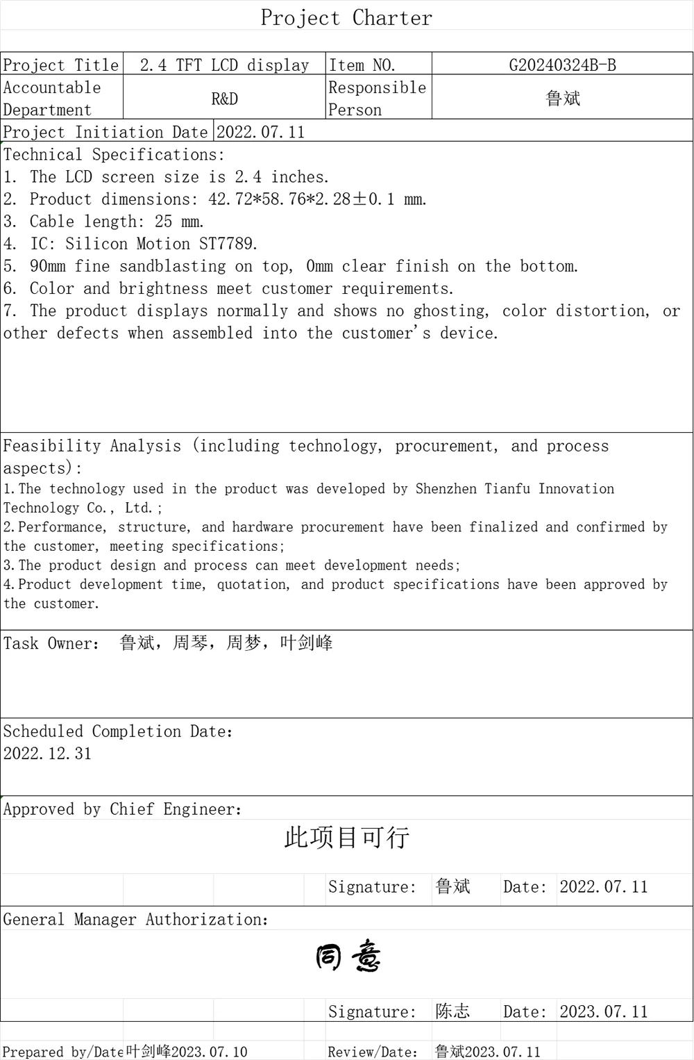 2.4' Geniş Temp TN TFT LCD Ekran Modulu