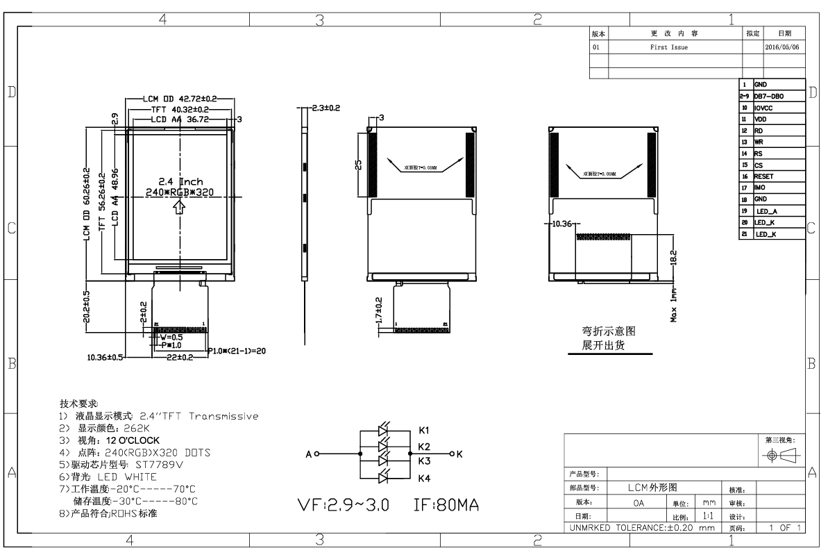 Tianfu Xüsusi 2.7 'Qrafik Standart TN TFT LCD Ekran Modulunun Spesifikasiyası