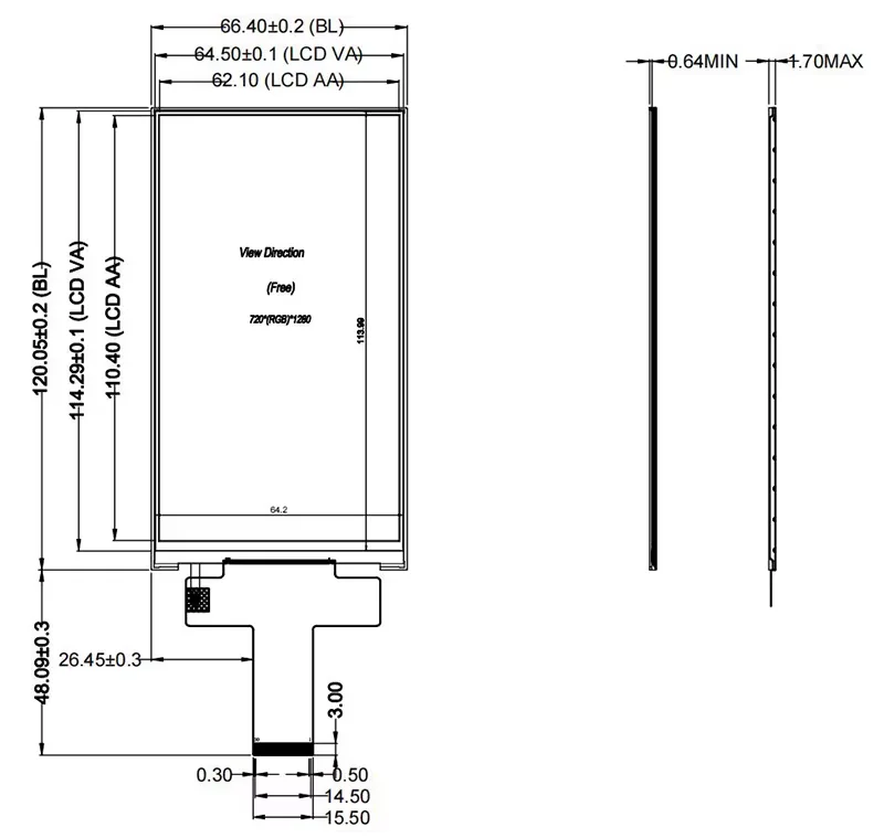 Cihazınızın vizual təsirini 5.0 yüksək parlaqlıq IPS TFT Capacitive sensoru ekranı modulu ilə qaldırın 1.85mm profil və kompakt 66.40x120.05x1.85mm.