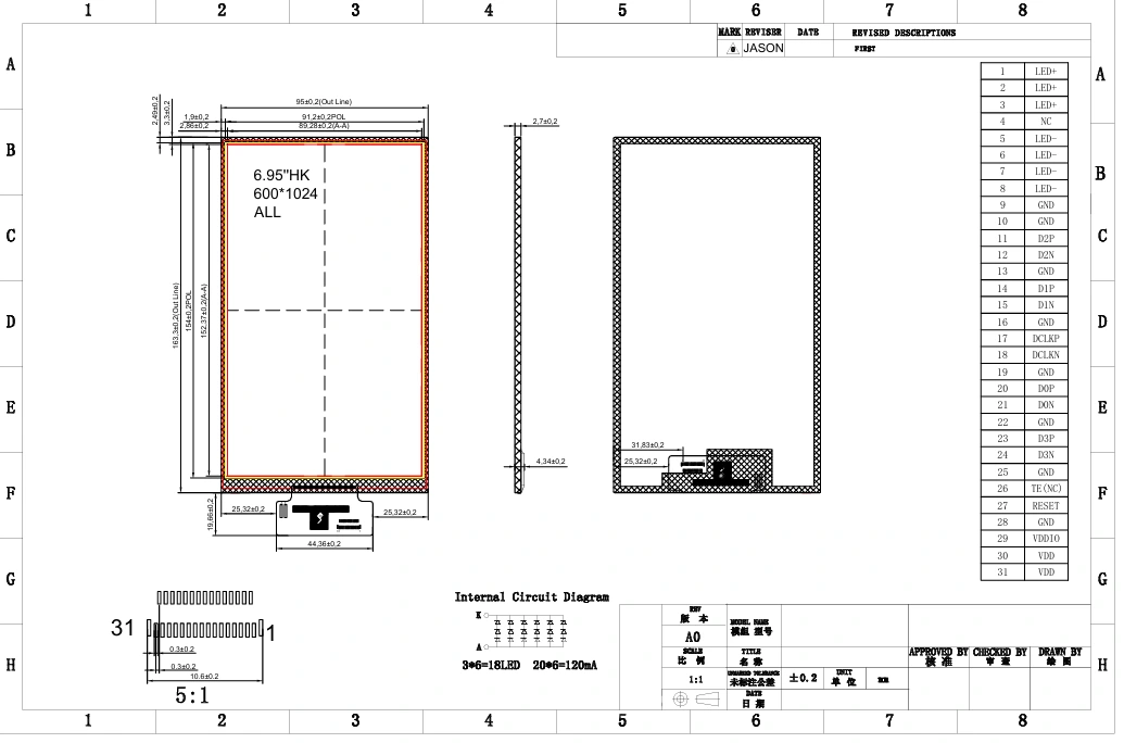 6.95 düym yüksək qətnamə, IPS TFT LCD ekran modulu 600 x RGB X 1024 pikselinin yüksək qətnaməsi olan 6.95 düymlük TFT LCD ekranında 350 CD / M² yüksək parlaqlığı və yüksək kontrast nisbəti 700: 1-in yüksəkdir. Tam baxılan bucaqlı ekran texnologiyası ilə birləşdirilmiş, 6.95 düymlük yüksək qətnamə, IPS TFT LCD ekran modulu hər hansı bir açıdan aydın və parlaq şəkillər təqdim edir. Sabit və səmərəli ötürmə üçün yüksək sürətli MiPi interfeysindən istifadə edir, geniş bir işləmə temperaturu diapazonu, 60 ° C-dən 60 ° C-ə qədər və yüksək etibarlıdır, müxtəlif ağıllı cihazların görüntüləməsi üçün uyğundur.