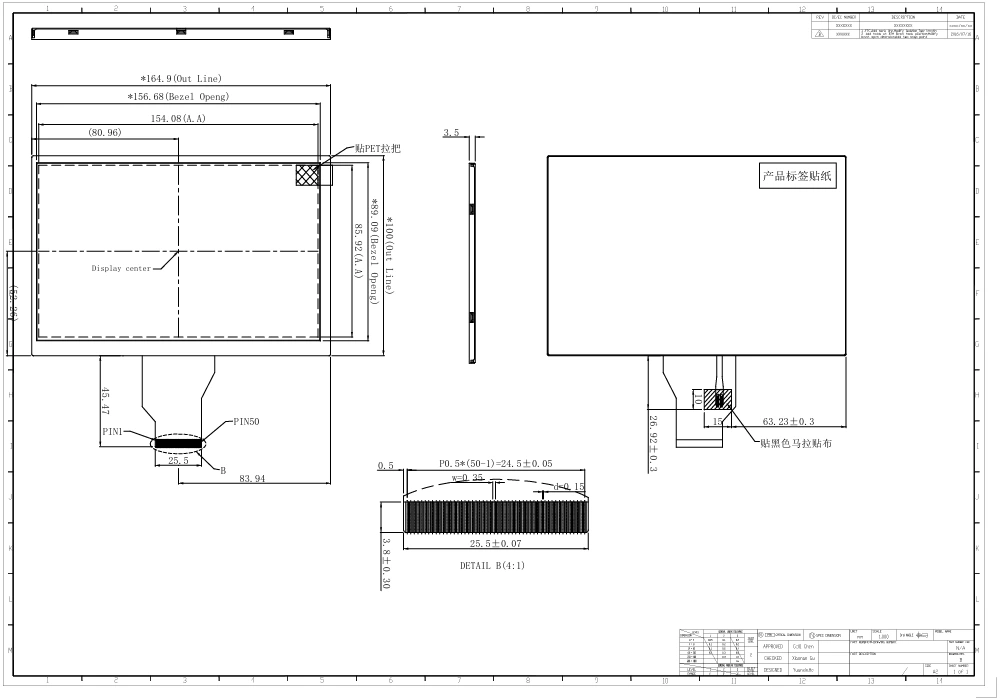 7.0 düymlük yüksək parlaqlıq TFT IPS TFT LCD ekran modulu 800 × 480, canlı rəng və geniş görüntü bucağı bir qətnamə ilə 7 düymlük HD ekrana malikdir. Panel istehlakı yalnız 0.226w olan aşağı güc dizaynı enerjiyə qənaət edir və çox səmərəlidir. 7.0 düymlük yüksək parlaqlıq TFT IPS TFT LCD ekran modulu, güclü uyğunlaşma təklif edən çoxsaylı tarama istiqamətlərini və siqnal rejimlərini dəstəkləyir. Onun yüksək etibarlılığı, çox ciddi ətraf mühit testlərindən keçərək, sənaye və tibbi də daxil olmaqla müxtəlif ssenarilərə uyğundur. Yalnız 150g ağırlığında və kompakt bir dizayn olan, quraşdırılmış ekranlar üçün idealdır.